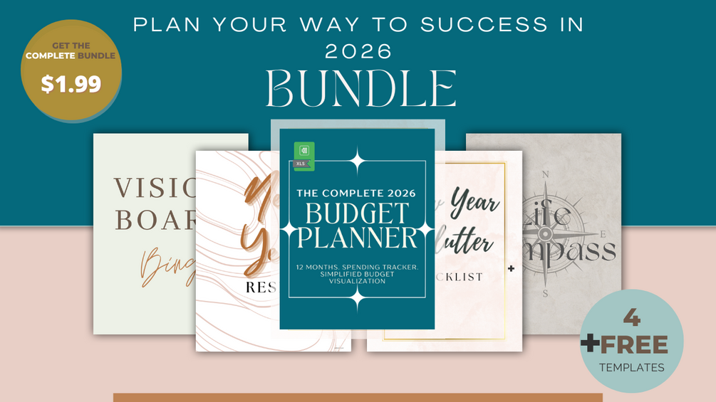 Complete Planner Kit: Budget Planner Google Sheets-New Year Declutter-New Year Reset Workbook-Life Compass-Vision Board Bingo